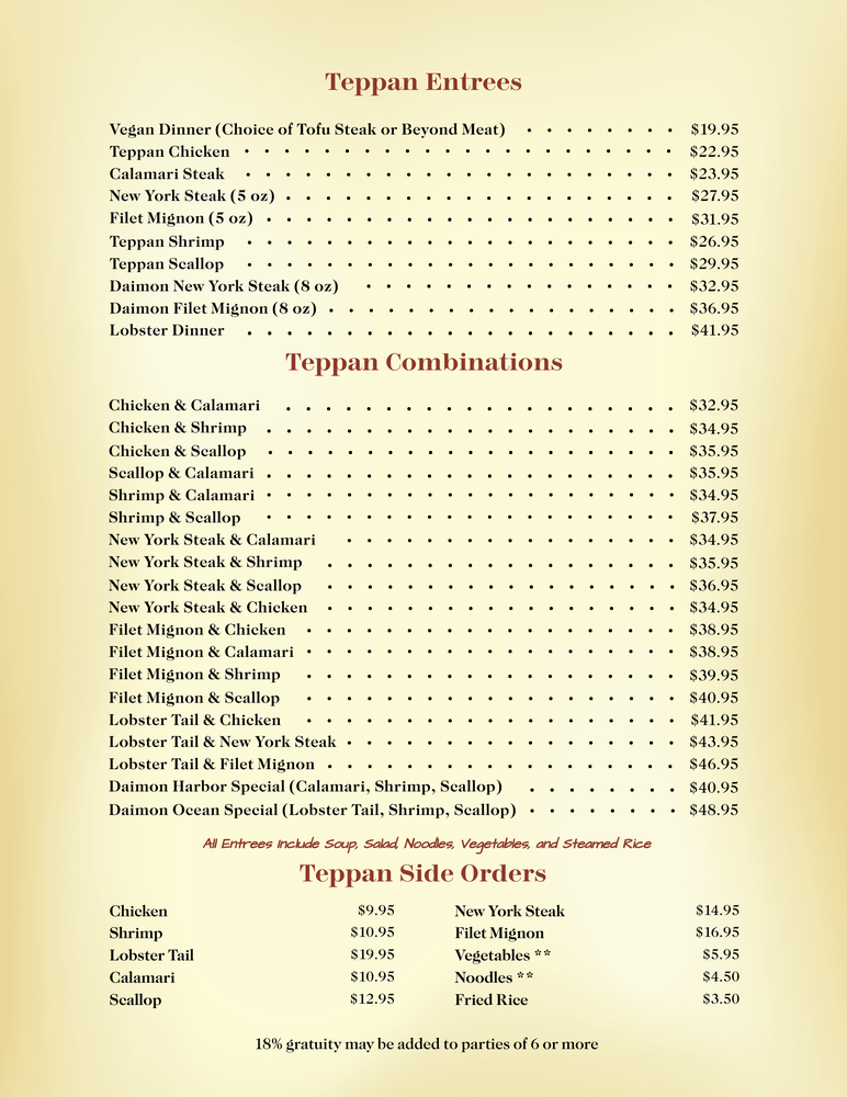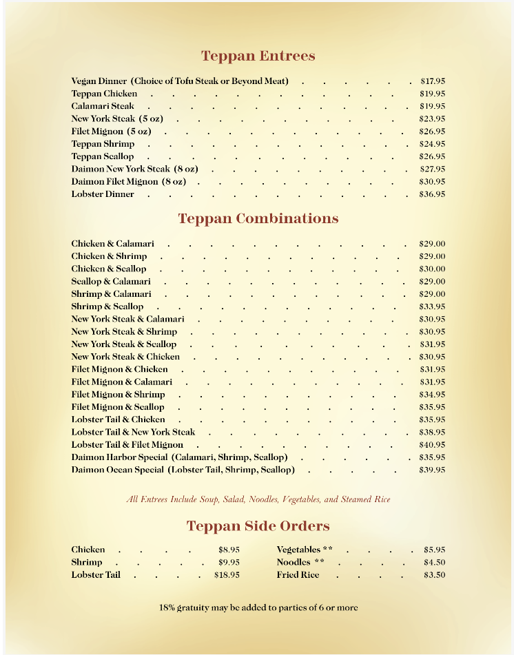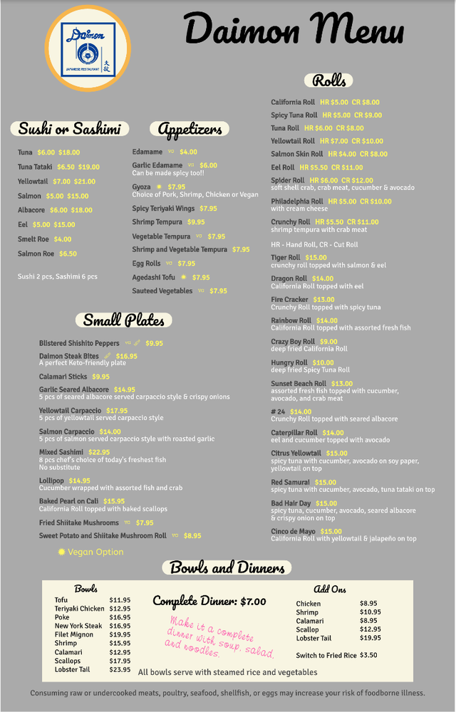 Daimon Japanese Restaurant Menu (Update 2025)