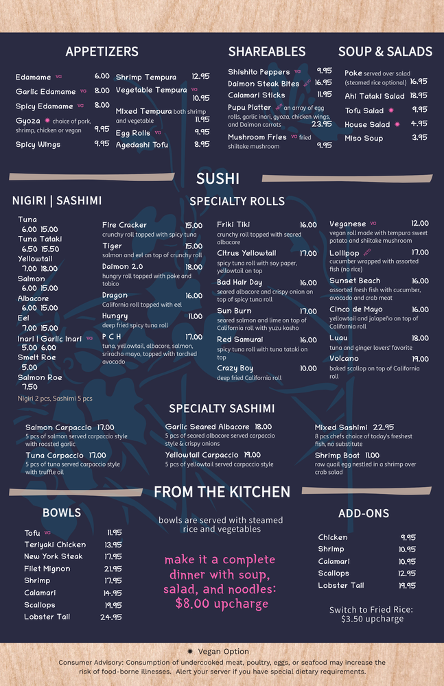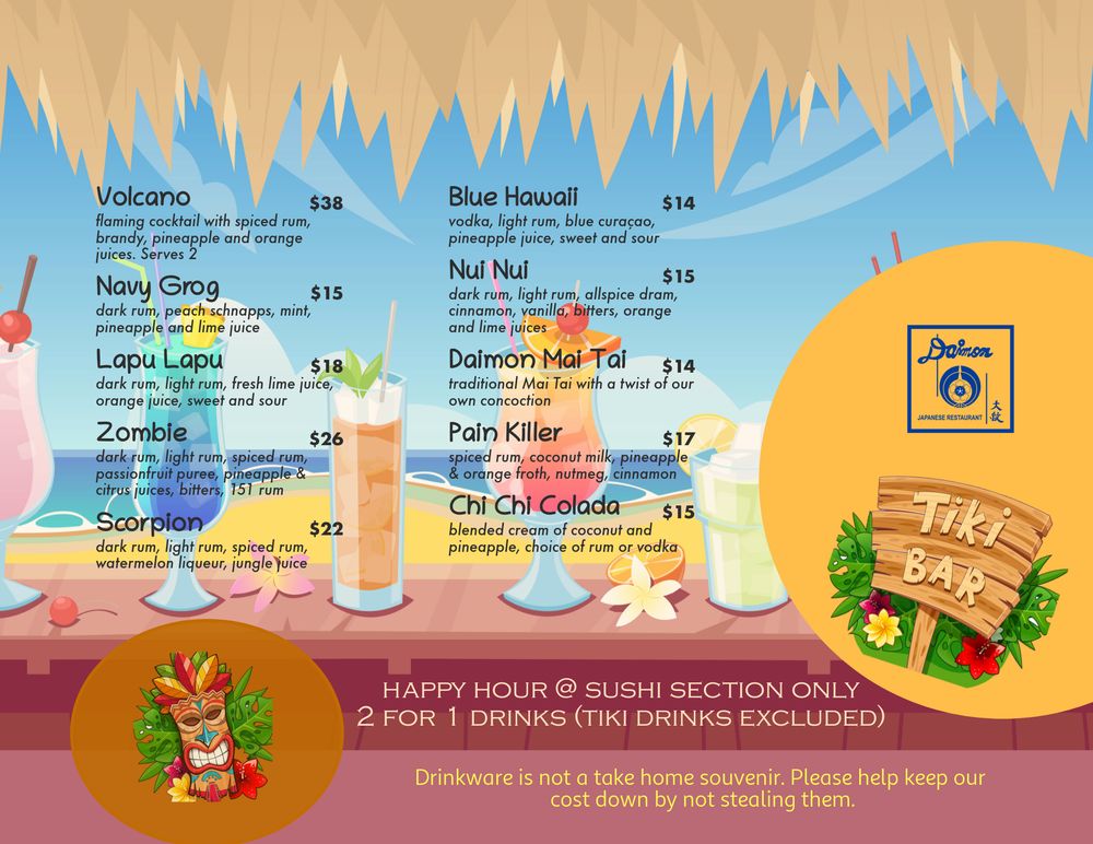 Welcome to Daimon Japanese Restaurant, where the art of Teppanyaki meets vibrant cocktail culture, nestled along the beautiful Pacific Coast Highway in Huntington Beach. This Asian and women-owned establishment is a haven for both casual diners and families, offering a welcoming atmosphere that is perfect for groups and kids alike.